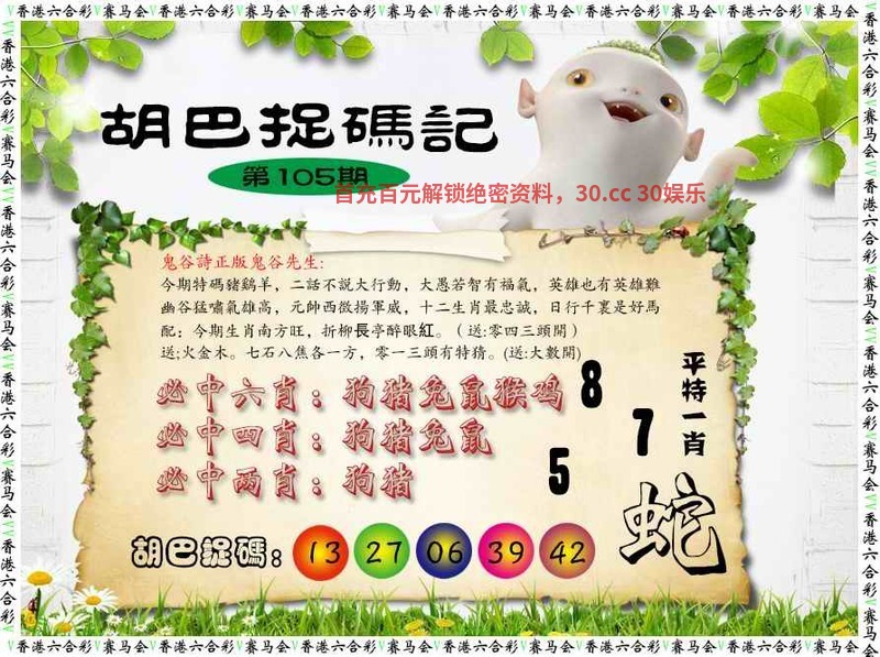 109期:白姐玄机/八百生肖诗/财神爷一句/八百梅花诗/另内幕玄机