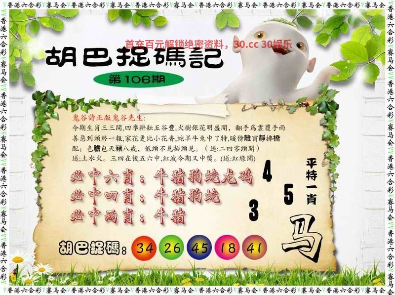 109期:密门仙机/心水特码信/黄大仙天书/波色生肖诗/生肖歇后语